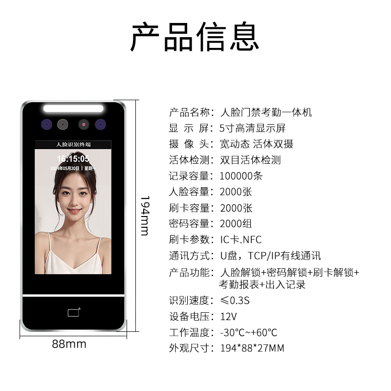 蓝博森LBS-50D动态人脸刷卡门禁机 价格: 编号:蓝博森LBS-50D 产地:广东